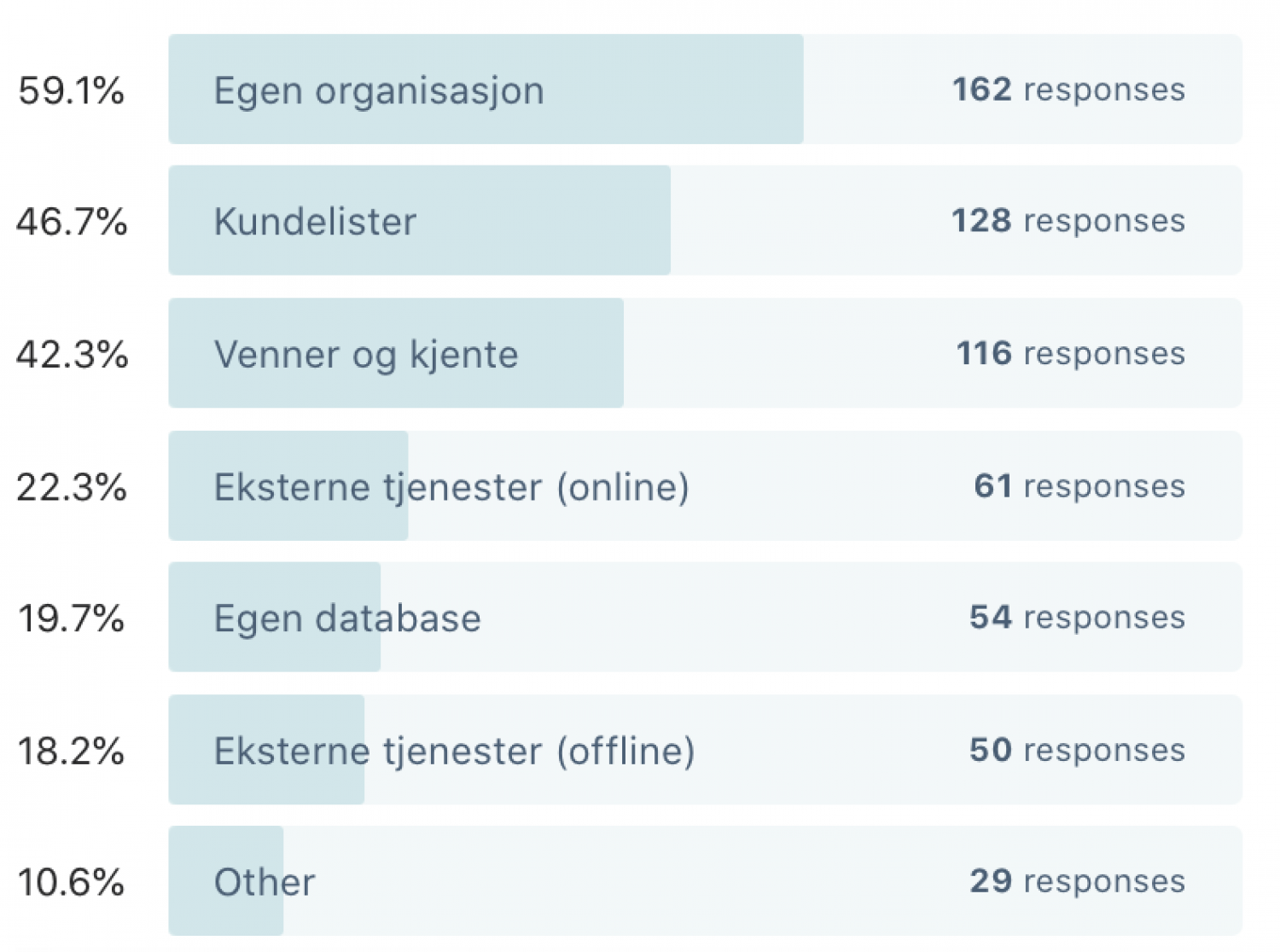 Tusen takk til alle som deltok! All data er gull verdt for bransjen og kunnskapsbasen vår vil forhåpentligvis vokse enda mer til årets undersøkelse.